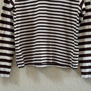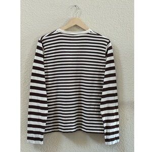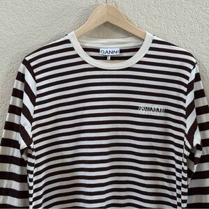 Ganni Top Tee Crew Long Sleeve Striped Casual Chic Preppy Brown White Large