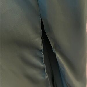 Eucalyptus Mermaid Pleated Stretch Satin Dress, slight pull on slit from dancing but can be easily stitched