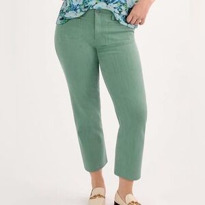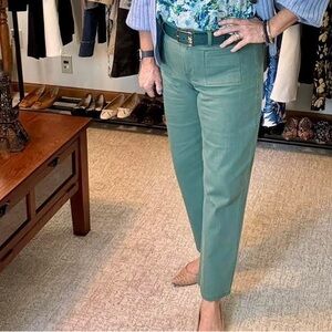 • Slim fit, straight leg, tonal topstitching, welt pockets in front, patch pockets in back, cropped length