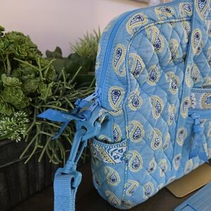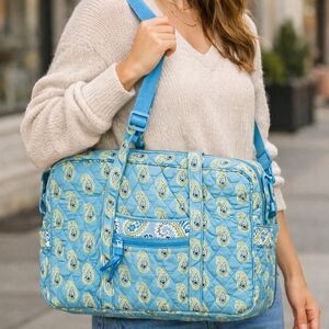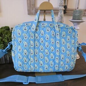 Vera Bradley Bermuda Blue Paisley Quilted Cotton Tote Messenger Laptop Bag