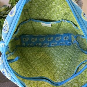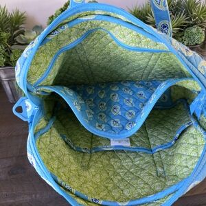 Beautiful Vera Bradley quilted cotton tote / messenger / laptop bag in the highly sought-after Bermuda Blue paisley retired print.