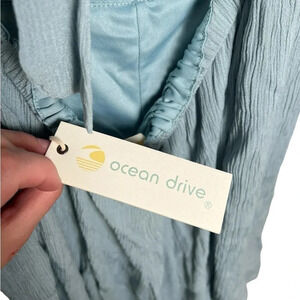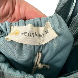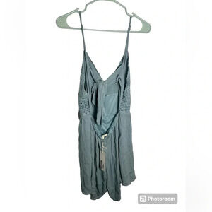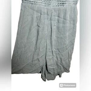 Ocean Drive Boho Romper Green Spaghetti Strap Back Tie Crochet Lace Top Size M