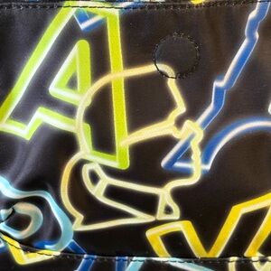 Chic crossbody bag with vibrant neon accents. Features bold design and practical zippers. Ideal for a stylish look.