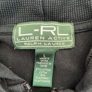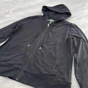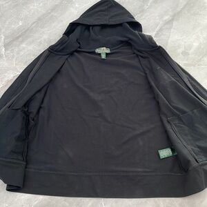 Good condition - Women's Lauren Active Ralph Lauren Zipper Hoodie Long Sleeve Sweatshirt Jacket. Has full zip up, drawstring hoodie, and two front pockets. Color: black. Size: L.
