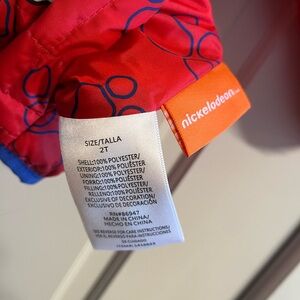 Paw Patrol Bright red jacket with fun blue designs. Features Nickelodeon branding.