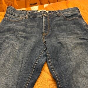 Levi's 525 Perfect Waist jeans with a unique blue patterned waistband. Straight leg design for a classic fit. 31” inseam. EUC. These are the most comfortable jeans I have ever had. I bought the wrong length.