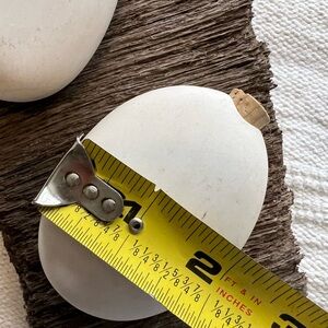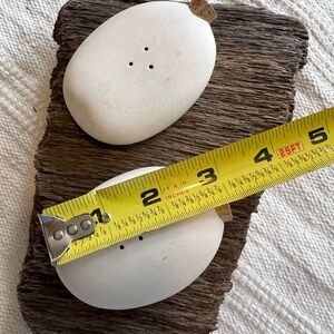 No longer available in store. Cast from a river rock, these ceramic salt and pepper shakers will add intrigue and playfulness to your tabletop. Sold as a set of two (one with two holes, one with three), they fit oh-so-perfectly in the hand.