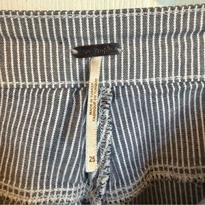Stylish and stretchy striped pants from Free people in size 25. Blue and white railroad stripe. Perfect pants for the office or a cute girls night out. Great condition and extremely flattering waist line.