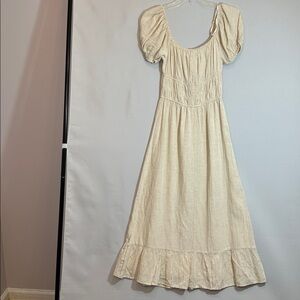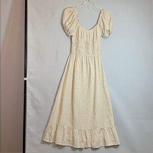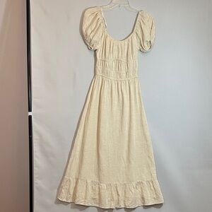 Sim & Sam Womens Size XS Smocked MIDI Milkmaid Dress Cream Puff Sleeve Dress NWT