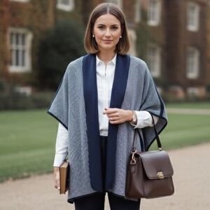 NWT BYLYSE M/L Old Money Timeless Preppy Ivy League Houndstooth Knit Poncho