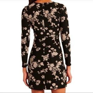Abercrombie & Fitch Black Floral Long Sleeve Dress bodycon keyhole detail Size M