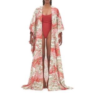 Andrea Iyamah Gamba Abstract Mushroom Red Cream Patterned Kimono NWT O/S