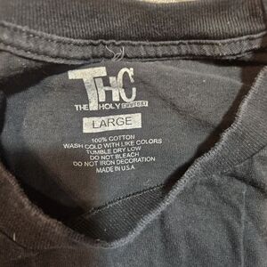 Notorious B.I.G. graphic T-shirt by THC (The Holy Couture). Black 100% cotton, made in USA. Size Large. Graphic shows wear/cracking but still solid. No major flaws.