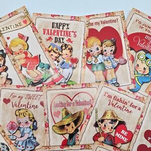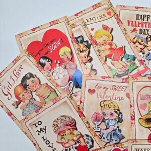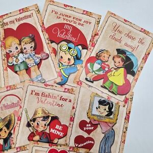 Vintage Style Valentine Cards Set Retro Children Love Romantic Greeting Cards