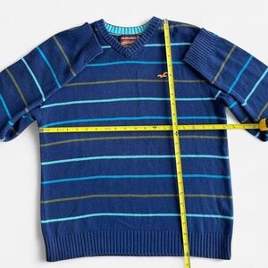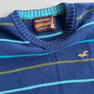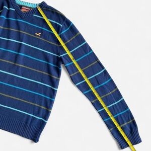 Hollister Blue Striped Cotton Knit V-Neck Sweater