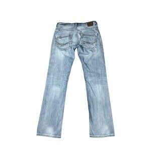 The BKE Carter Men's Jeans in size 32XL Tall (32x36) are a stylish and comfortable choice for any man's wardrobe. These straight-cut jeans feature a light wash denim with a stretch fabric for added flexibility. The classic blue color and solid pattern make them versatile for various outfits, while the zip and button closure adds a touch of convenience. The mid-rise fit and relaxed style provide both comfort and a timeless look. Perfect for any season, these jeans are a must-have for any man looking for a durable and fashionable denim option.