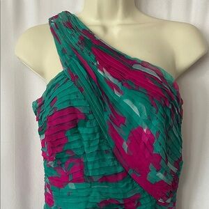 Tadashi Shoji Elegant One-Shoulder Teal/Pink 💯% Silk Dress **Size 6** 🌺🌺