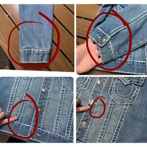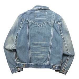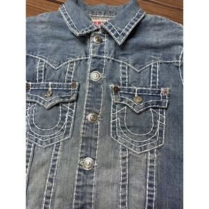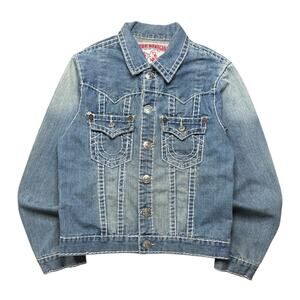 Men's Vintage True Religion Jimmy Super T Blue Denim Jacket Size Medium (Flaws)