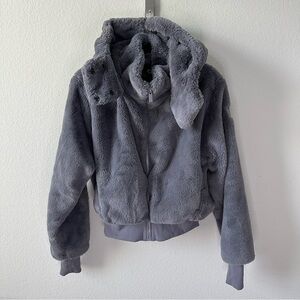 ALO YOGA FAUX FUR FOXY JACKET in FOG SZ S