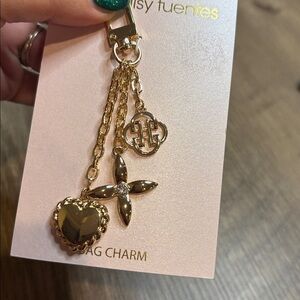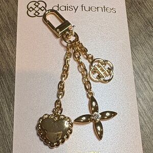 Elegant gold key holder by Daisy Fuentes. Features heart and flower charms. Perfect for keys or bag.