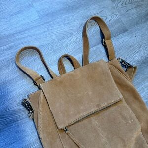 Stylish and versatile tan suede backpack for women. Perfect for everyday use with a chic design.