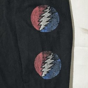 Iconic Grateful Dead long sleeve graphic tee featuring the classic Stealie skull with roses and repeating lightning bolt logos down the sleeves. Oversized fit with a bold, worn-in rock tee vibe that’s perfect styled relaxed or layered.