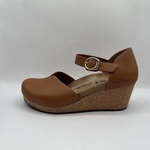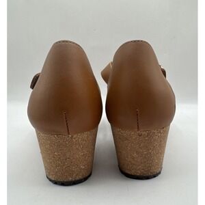 Papillio by Birkenstock Wedge Mary Jane Clog Shoes Tan Leather Buckle 39 Women 8