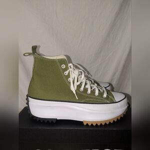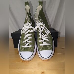 Men's or women's Stylish Converse green high-top sneakers with white laces and platform sole. Perfect for casual wear. size 11 for women or size 9.5 for men, EU 43