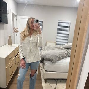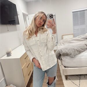 White button up shirt, super cozy, oversized, and comfy