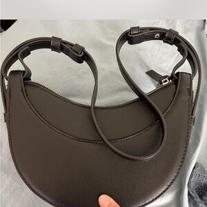 Chic Polene handbag in black leather. Features beige interior with gold zipper. NWOT Worn only a few times, needs a new home! Comes with two straps and the box. Listed online price $620