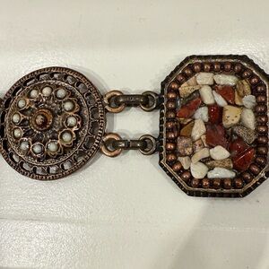 Vintage BELT Mosaic Stone Link ~ Antique Brass Octagon & Circle Boho ~ EUC