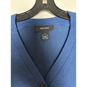 NWT Karen Kane Sweater Cardigan Cashmere Blend Blue w/ White Shirt Hem Size Med