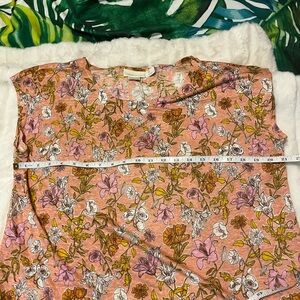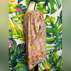 Cynthia Rowley L Pink Floral High Low Linen Summer Spring Casual Preppy Top