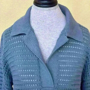 Haven Well Within Organic Cotton Open Stitch Long Sleeve Sweater Blue Medium EUC