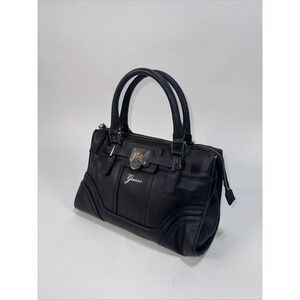 Guess Black Faux Leather Satchel Handbag – Lock Detail, Top Handle & Strap
