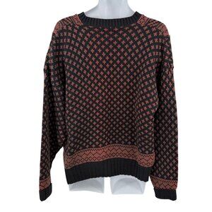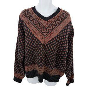 AMERICAN EAGLE OUTFITTERS BLACK & BROWN FAIR ISLE CHUNKY KNIT SWEATER - XL
