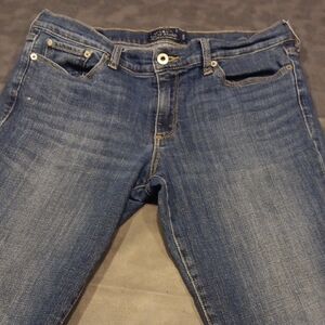 Classic straight leg jeans. Features back pockets. Comfortable fit.