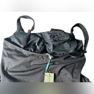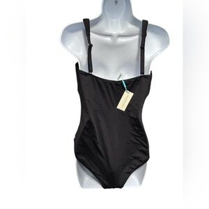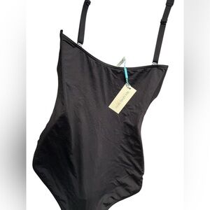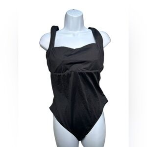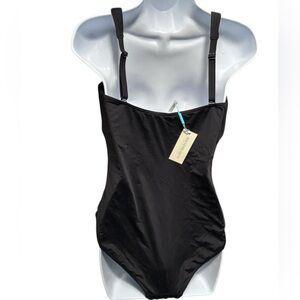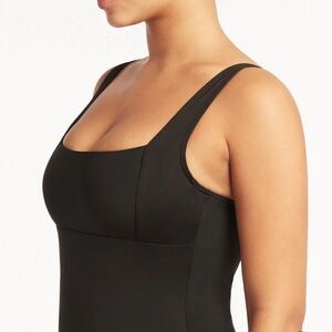 SEA LEVEL SWIM AUSTRALIA eco essentials square neck underwire one piece swimsuit. Solid black. Built in underwire bra with removable bra cups. Convertible straps.