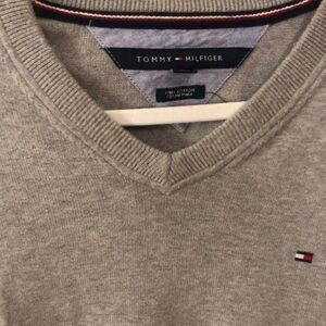 Tommy Hilfiger Mens V-neck Heather Grey Pullover Knit Sweater Size Medium