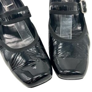 Step out in style with these elegant black patent leather Mary Jane heels.