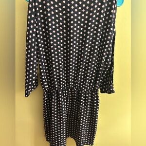 Beautiful dress with navy and pink polka dots. Perfect for any occasion. Comfortable and stylish.