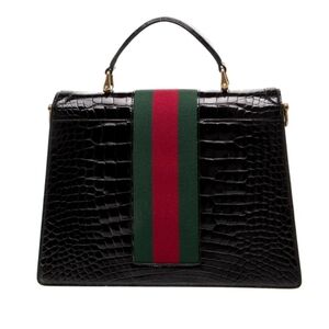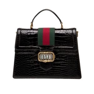 Gucci Web Top Handle Bag Medium Black Crocodile