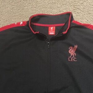Classic black varsity jacket with bold red accents. Features iconic emblem and sporty style.