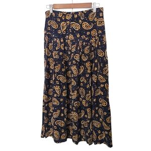 Vintage 90s Express Paisley Maxi Skirt Rayon Blue Orange Boho Gorpcore Medium