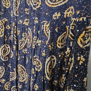 Elevate your wardrobe with this stunning vintage 90s Express maxi skirt. Featuring a vibrant vibrant blue and orange paisley print, this piece is made from 100% rayon for a lightweight, breathable, and flowy fit. Perfect for a boho, whimsygoth, or coastal aesthetic.