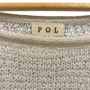 This cozy and chic POL knit sweater offers a relaxed, bohemian vibe. Features include a trendy distressed raw hem and a comfortable oversized fit that drapes beautifully. Perfect for layering over a tank top or long sleeve shirt.
