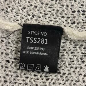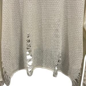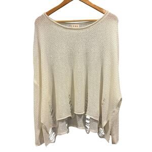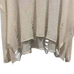 POL Boho Distressed Knit Ivory White Poncho Sweater, Medium