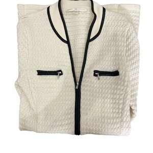 Boston Proper Cream Sweater Cardigan with Faux Leather Black Trim