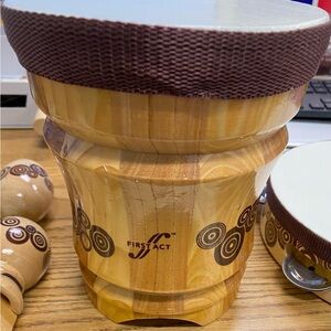 Introduce your child to the world of music with the First Act Kids Percussion Set. This set features natural wood tones, perfect for budding musicians. Durable and fun, it's ideal for creative play. Never used, just opened box to store in a tote.