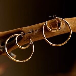 Stylish gold hoops with a unique twisted design. Perfect for elevating any look. brass hoops gilded with fine gold as per the Sezane website, 3.8cm height, pierced ears.